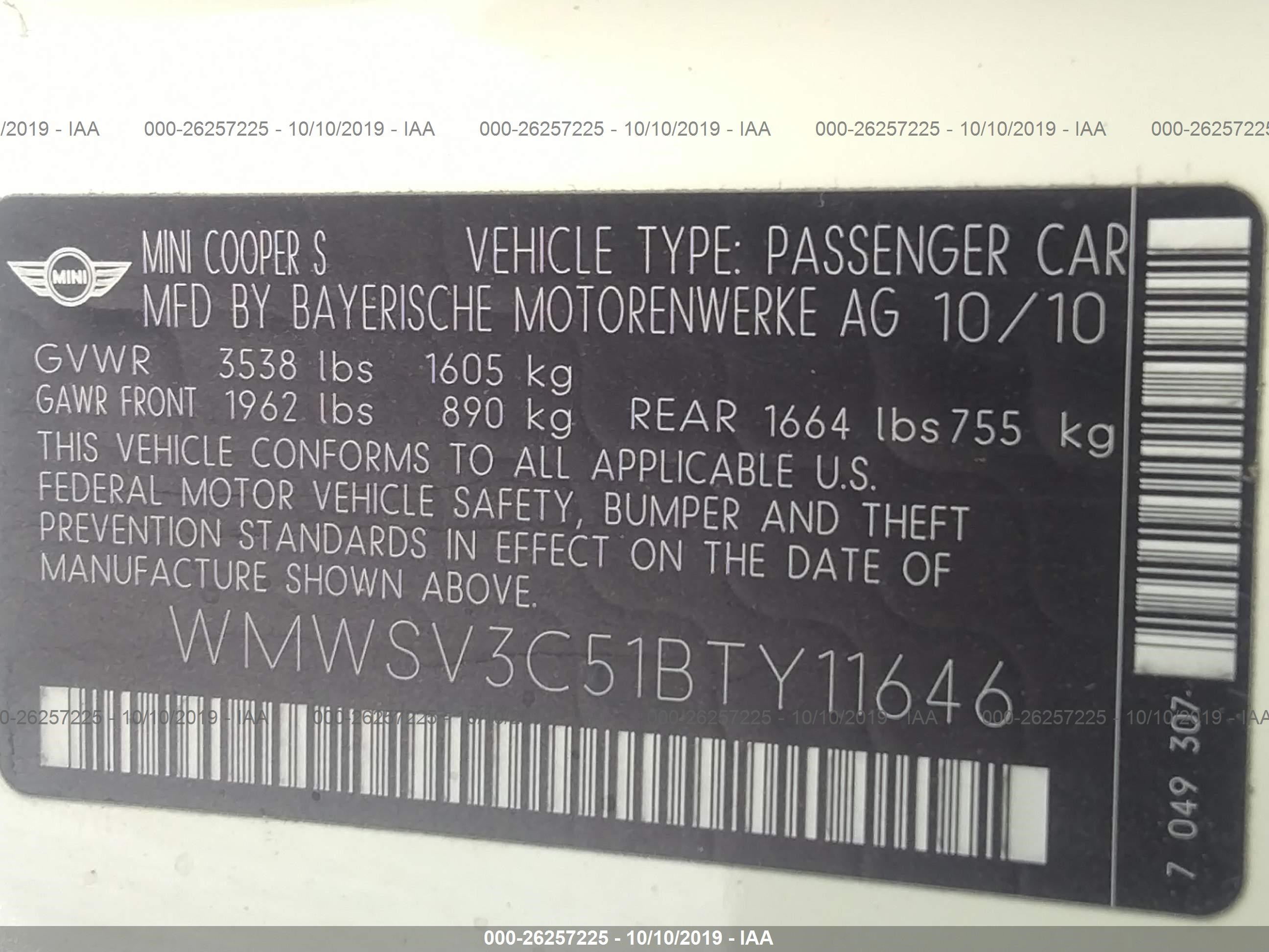 VIN: WMWSV3C51BTY11646