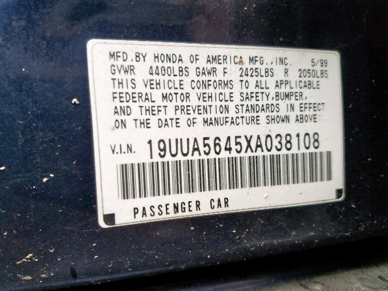 VIN: 19UUA5645XA038108
