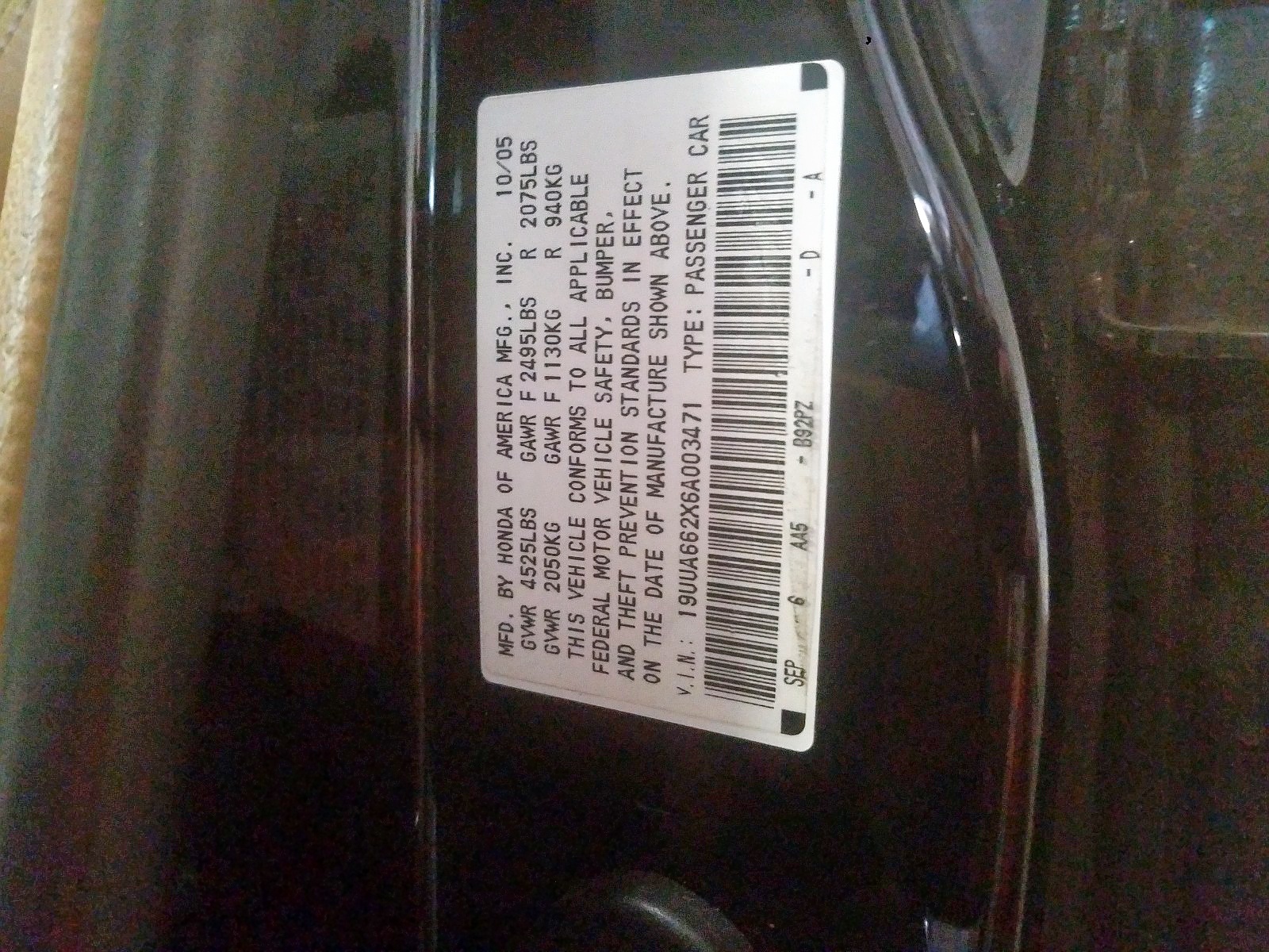 VIN: 19UUA662X6A003471