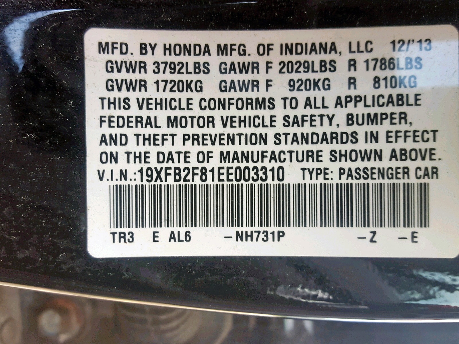 VIN: 19XFB2F81EE003310