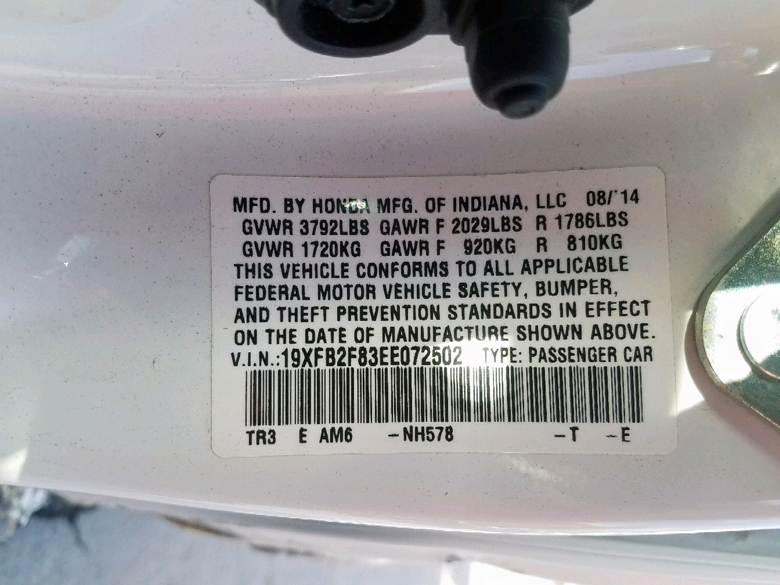 VIN: 19XFB2F83EE072502