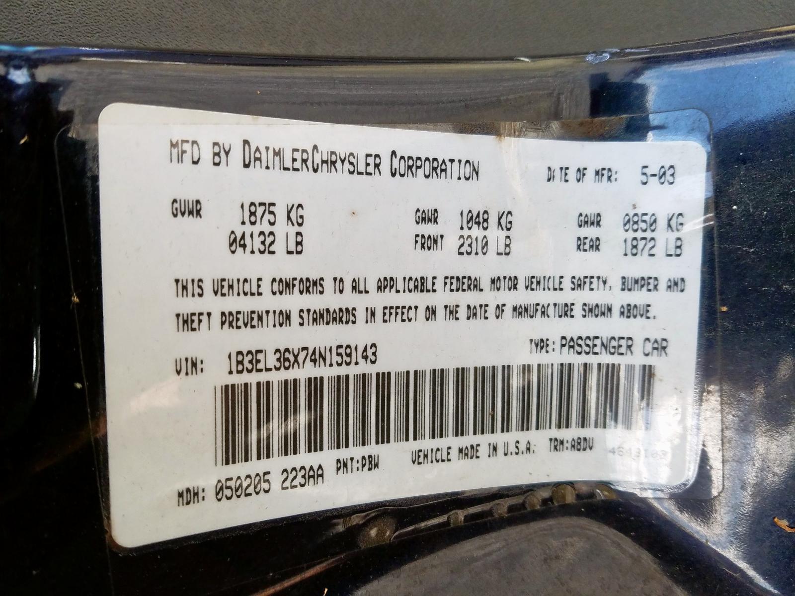 VIN: 1B3EL36X74N159143