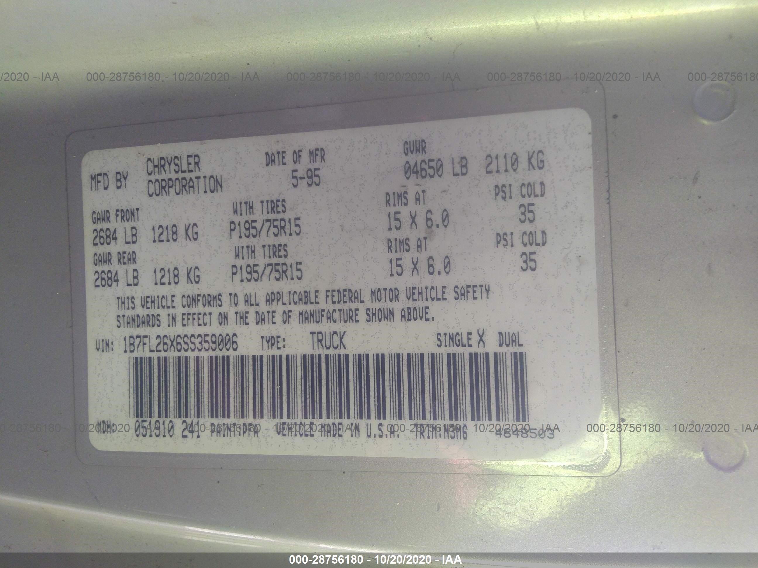 VIN: 1B7FL26X6SS359006