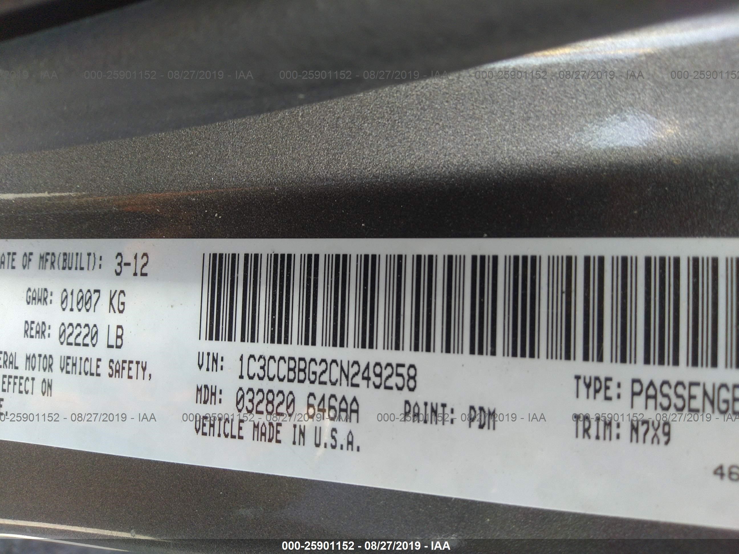 VIN: 1C3CCBBG2CN249258