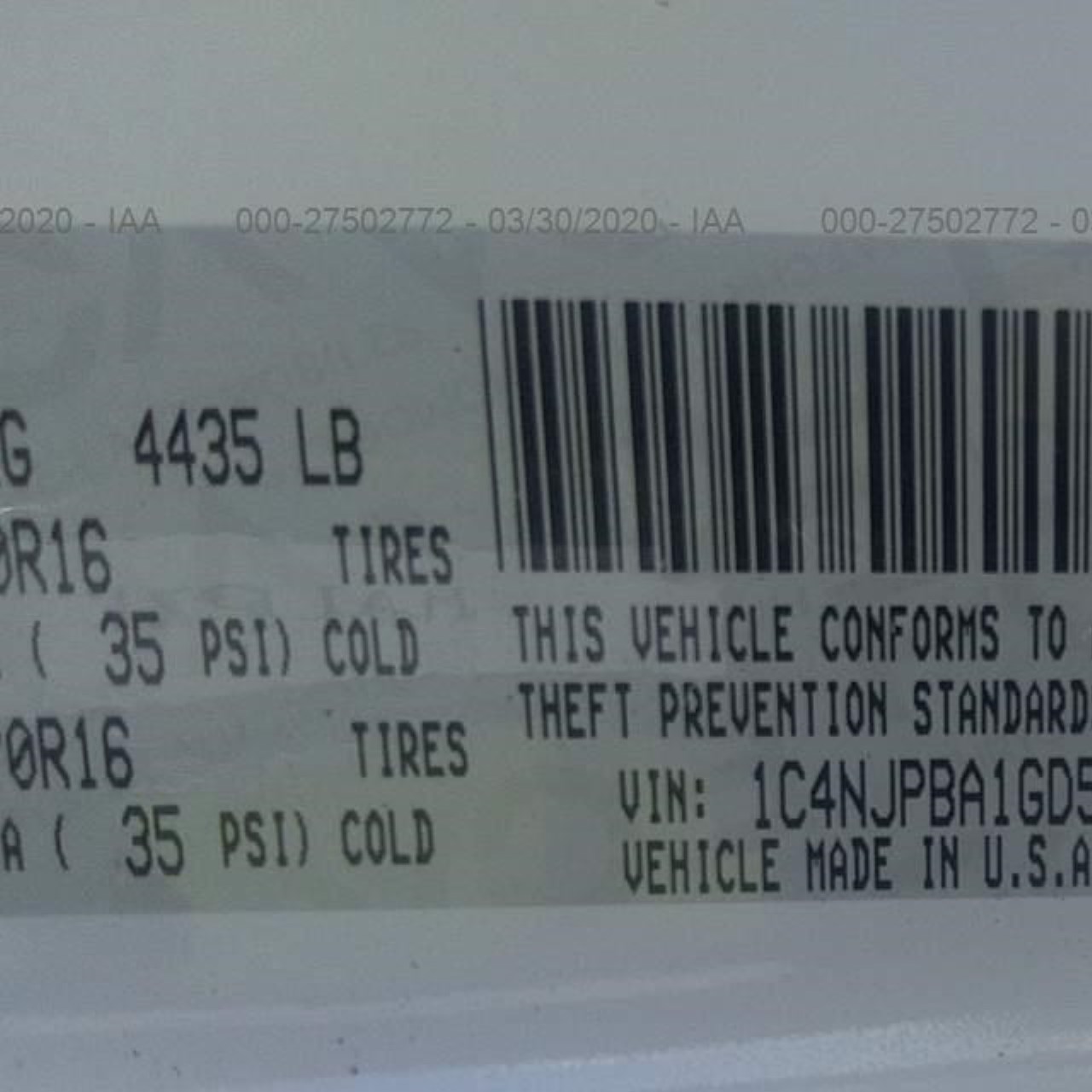 VIN: 1C4NJPBA1GD543569