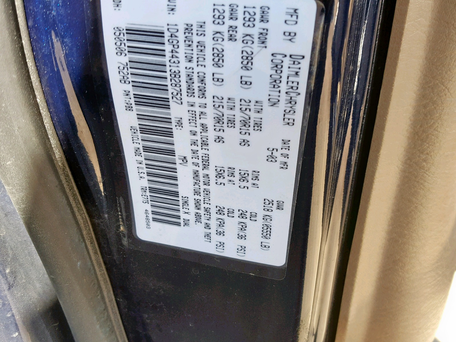 VIN: 1D4GP44313B287527