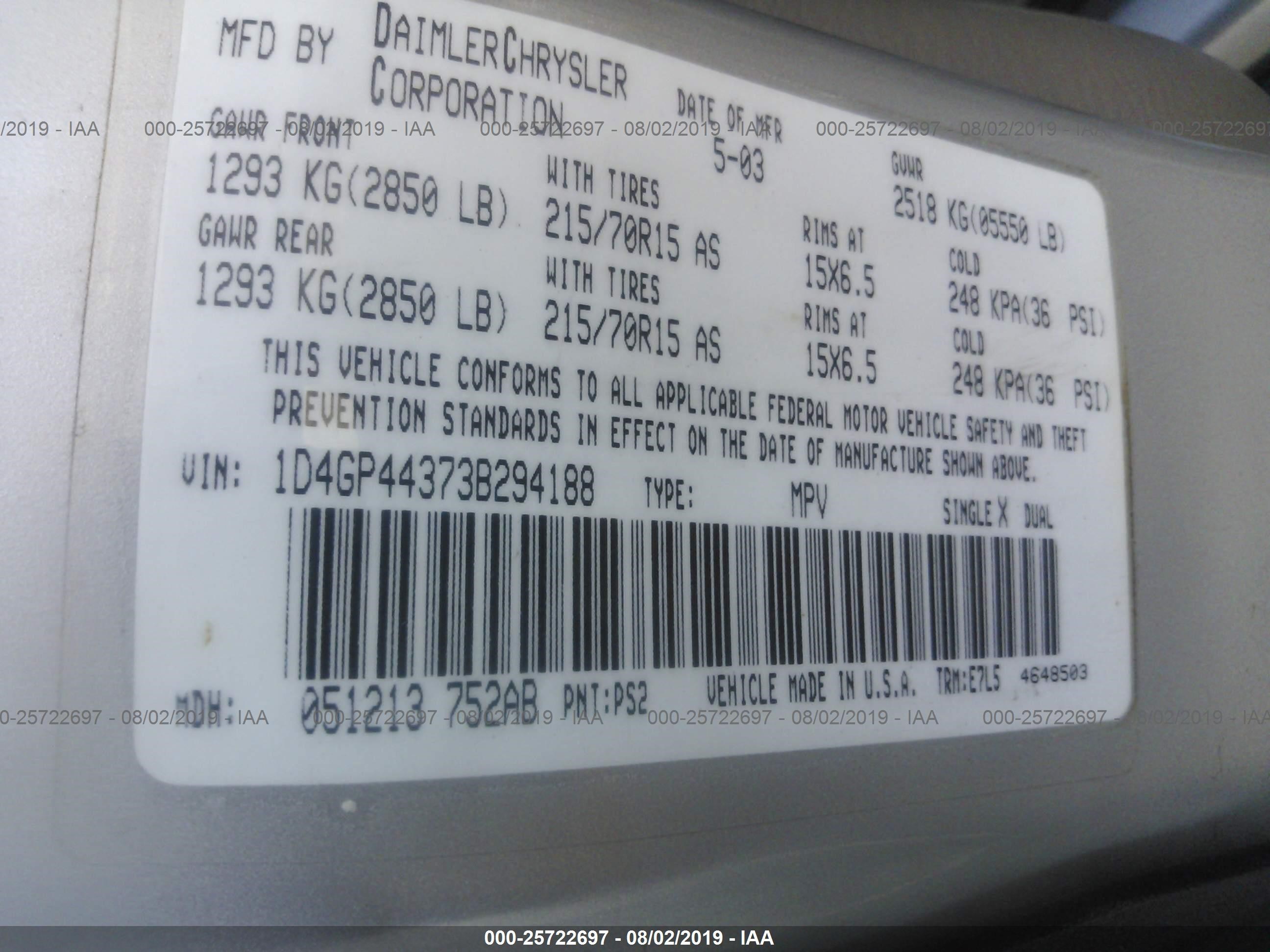 VIN: 1D4GP44373B294188