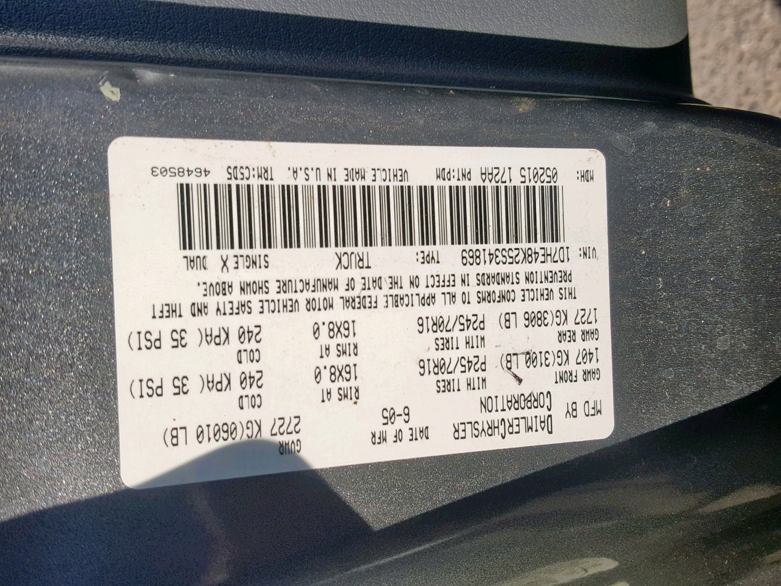 VIN: 1D7HE48K25S341869