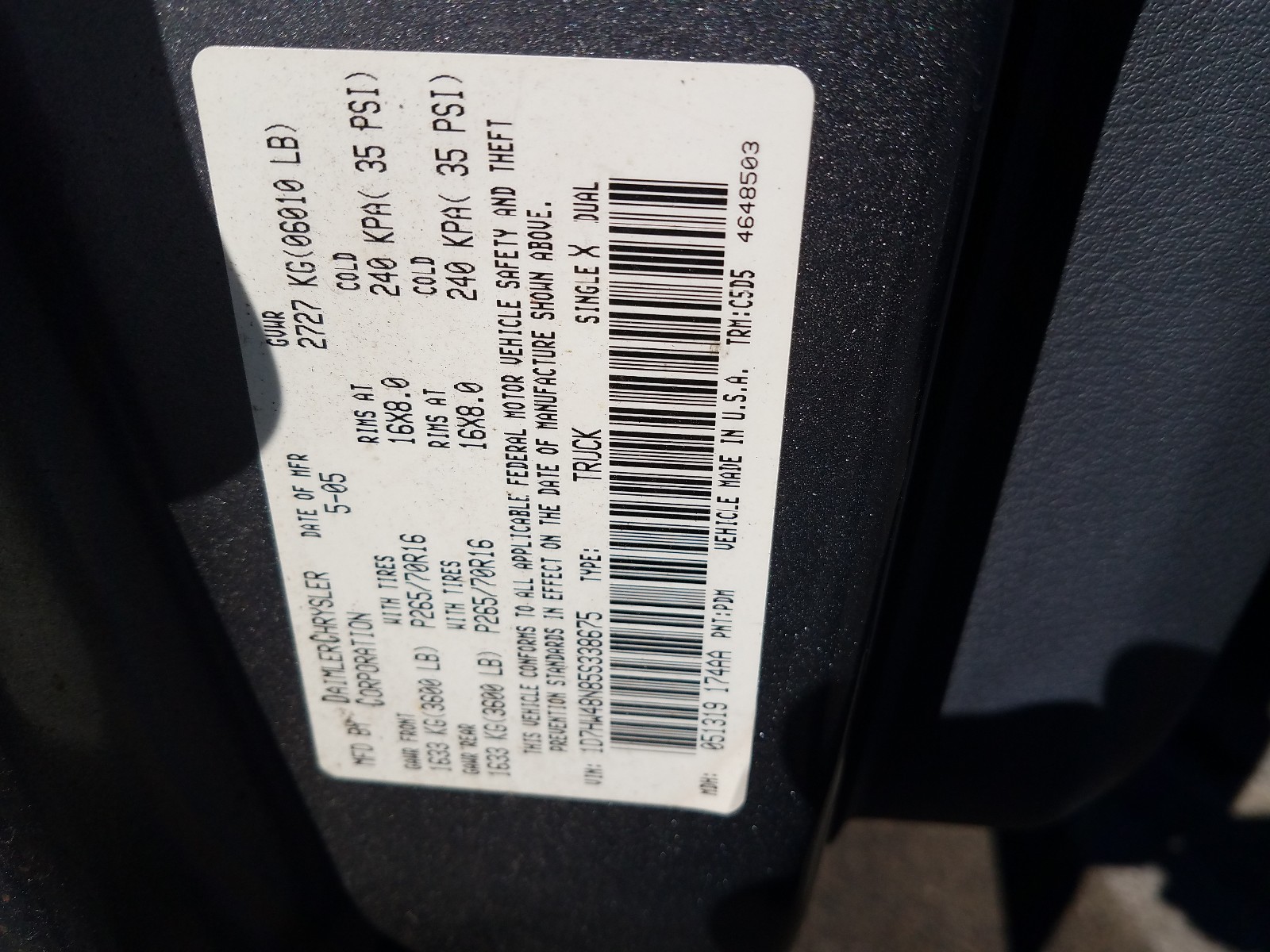 VIN: 1D7HW48N85S338675