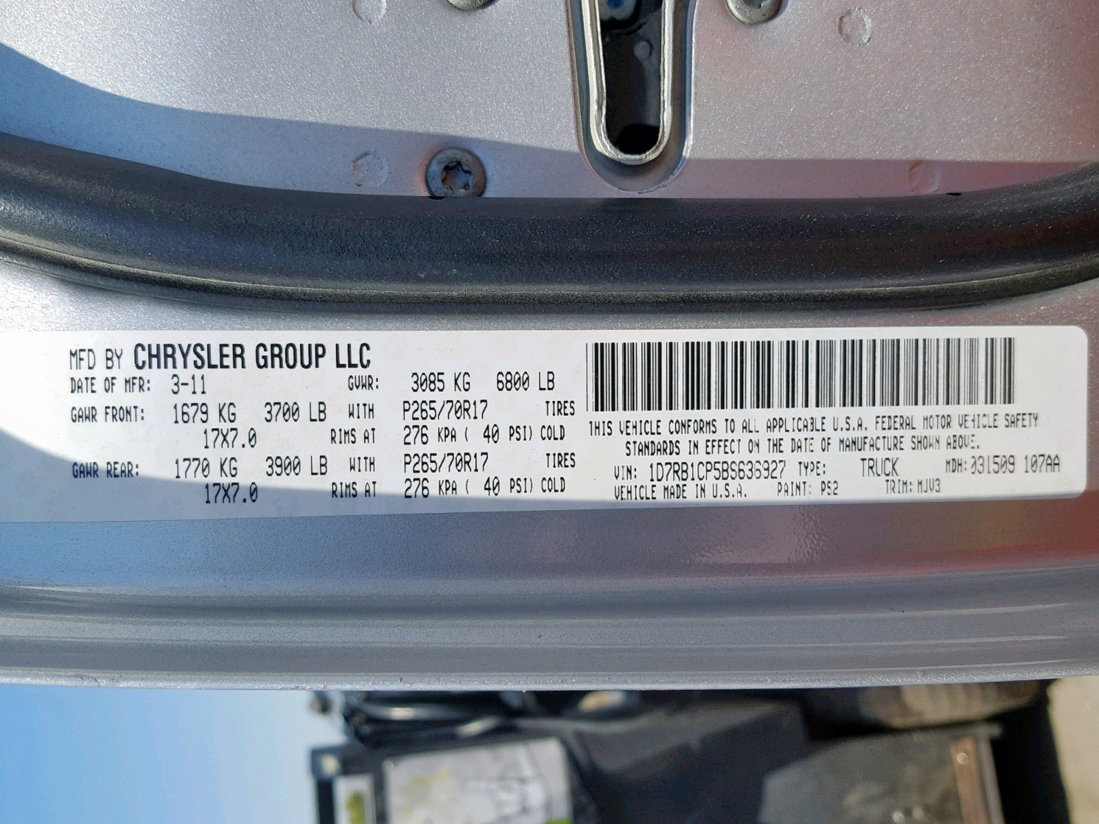 VIN: 1D7RB1CP5BS636927