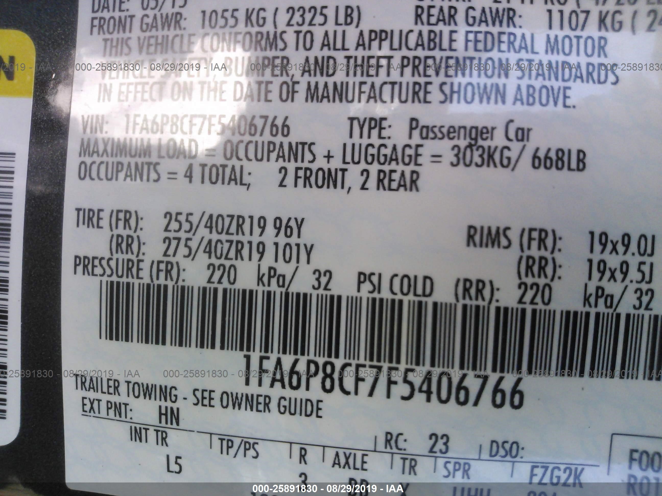 VIN: 1FA6P8CF7F5406766