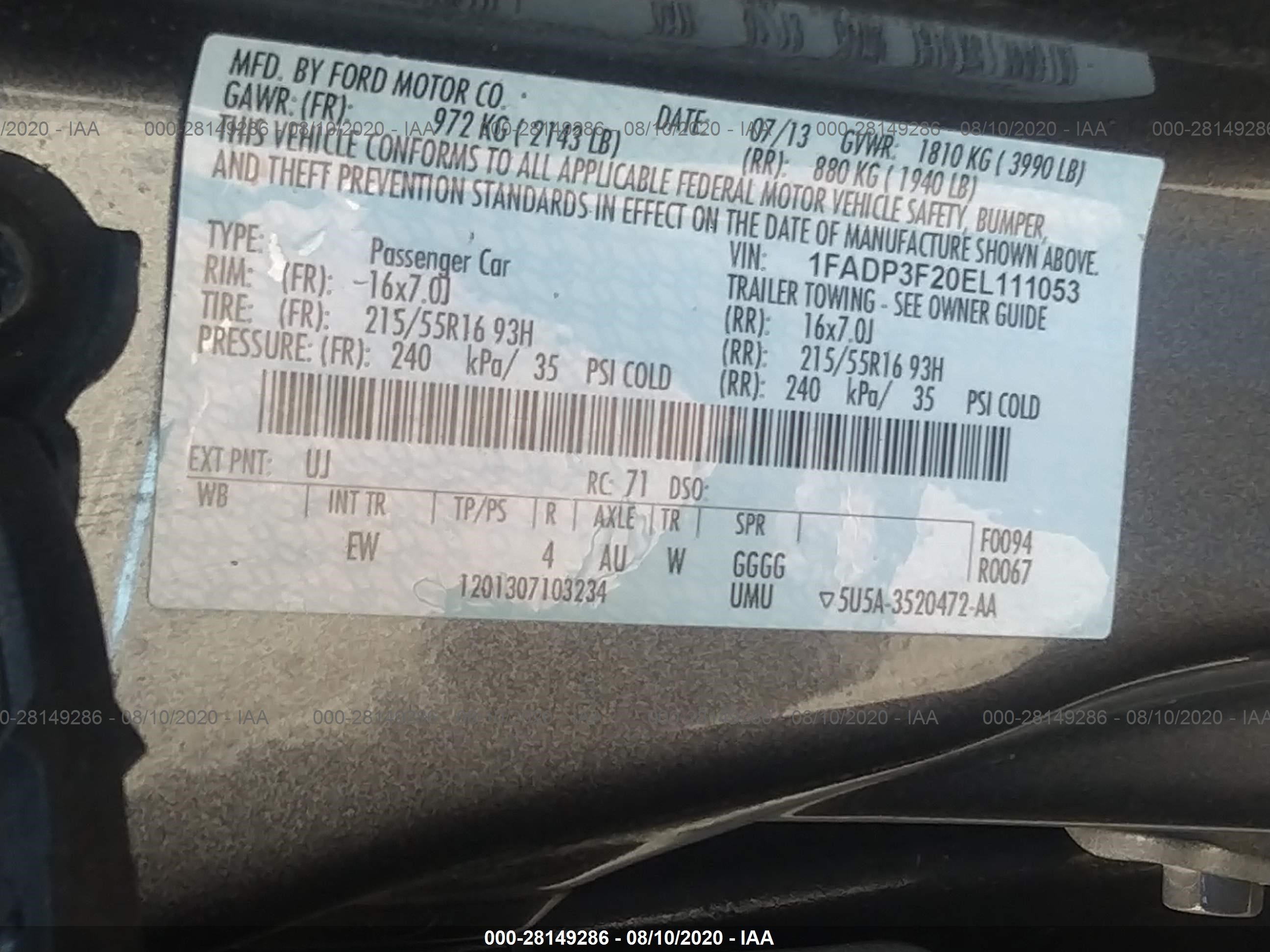 VIN: 1FADP3F20EL111053