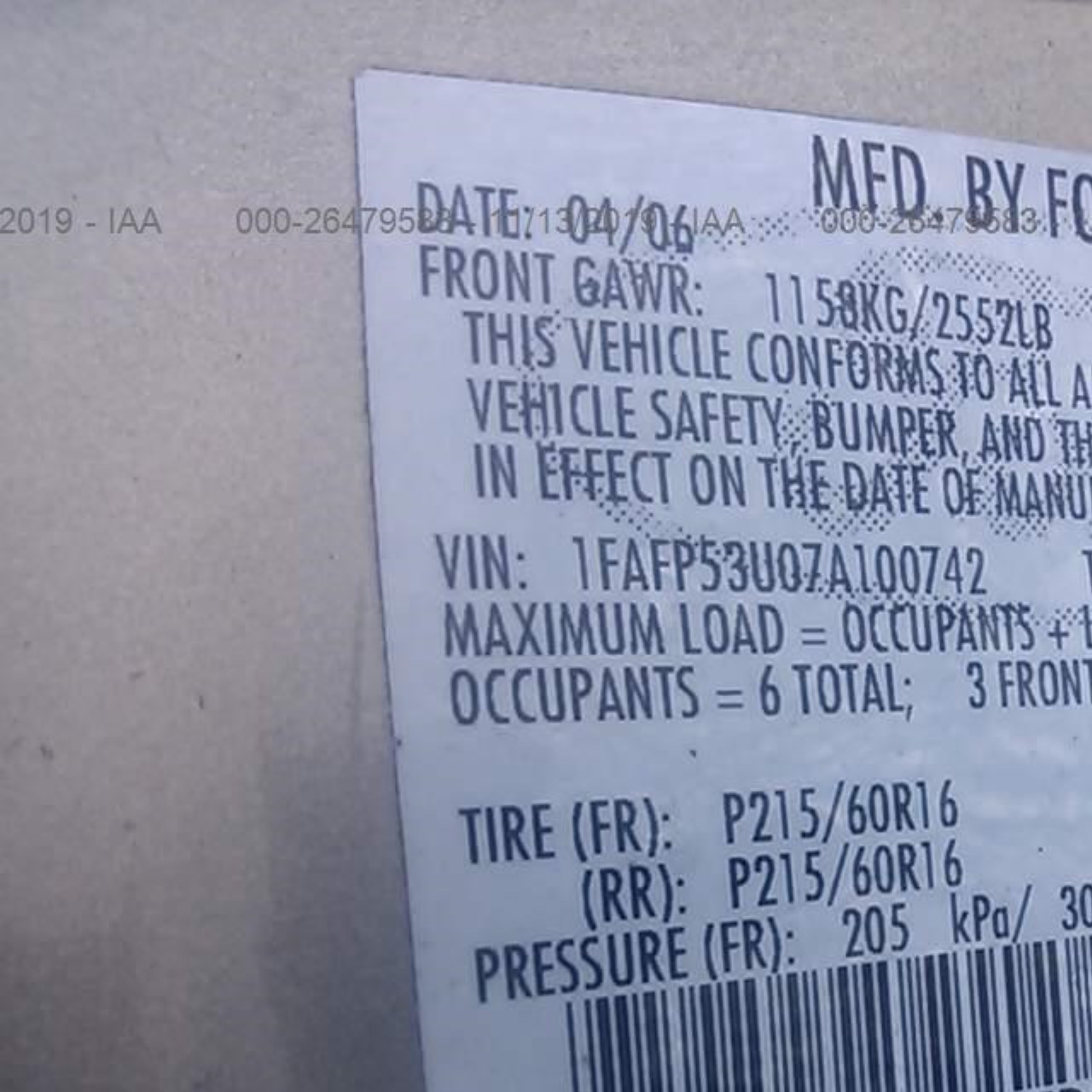 VIN: 1FAFP53U07A100742