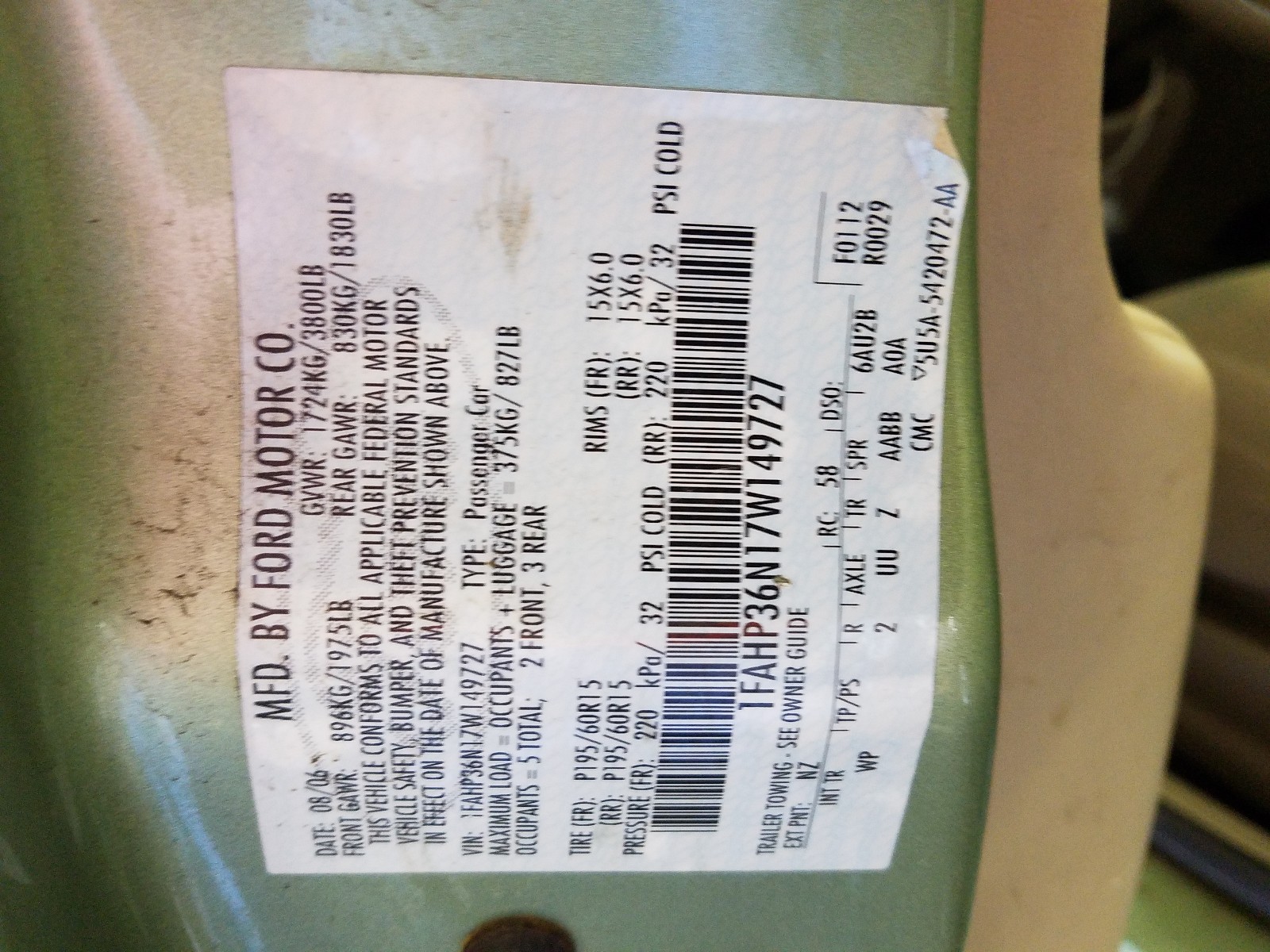 VIN: 1FAHP36N17W149727