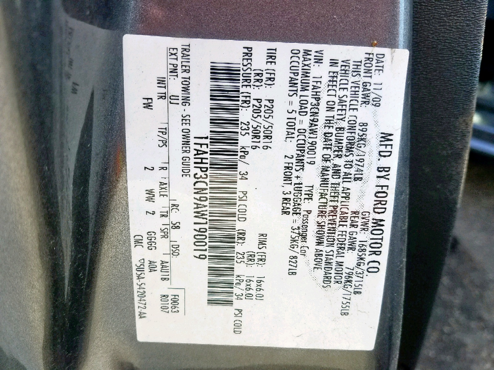 VIN: 1FAHP3CN9AW190019