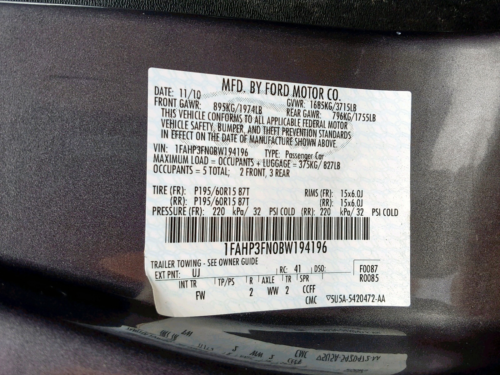 VIN: 1FAHP3FN0BW194196