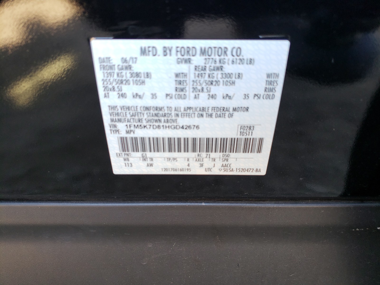 VIN: 1FM5K7D81HGD42676