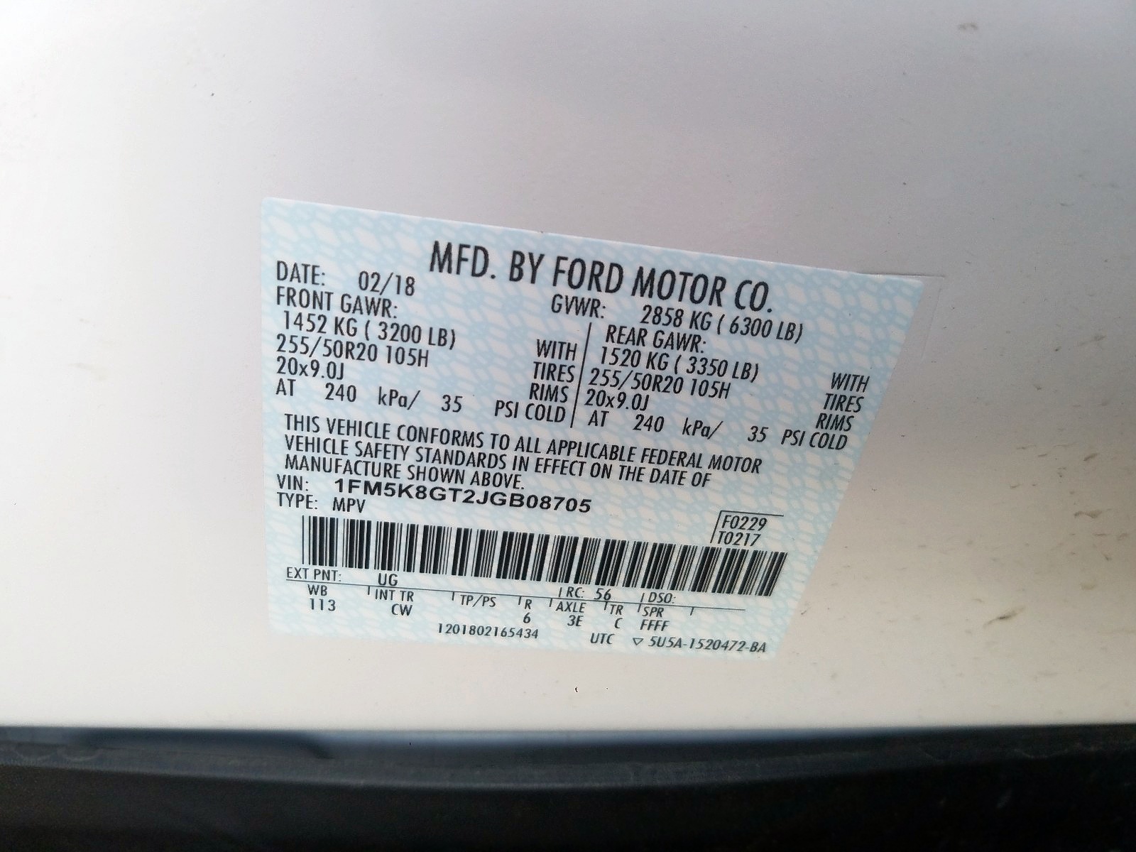 VIN: 1FM5K8GT2JGB08705