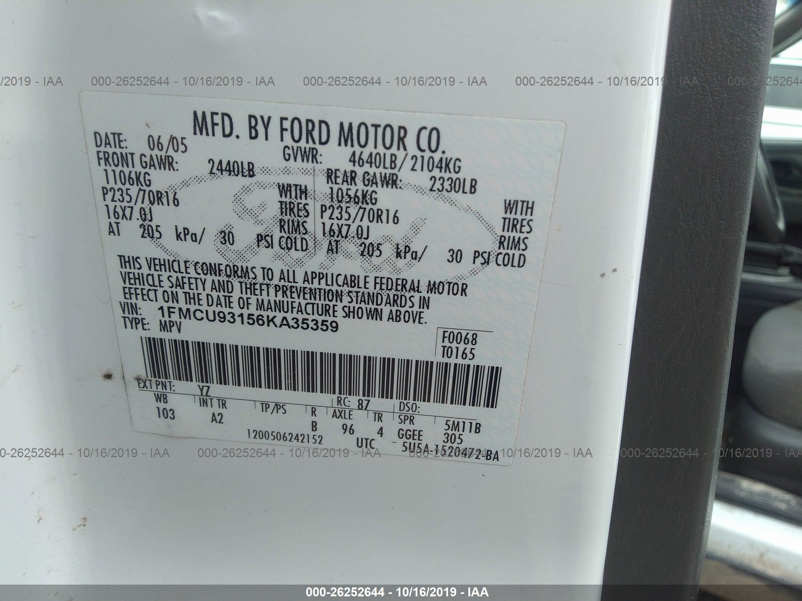 VIN: 1FMCU93156KA35359