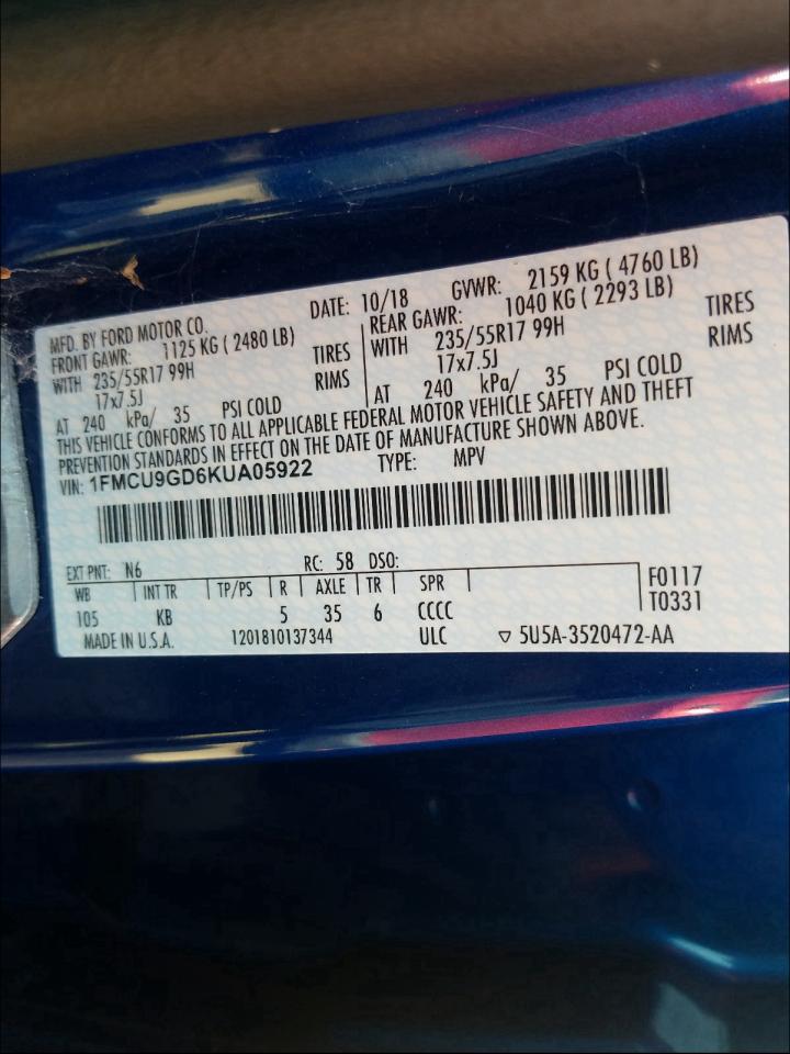 VIN: 1FMCU9GD6KUA05922