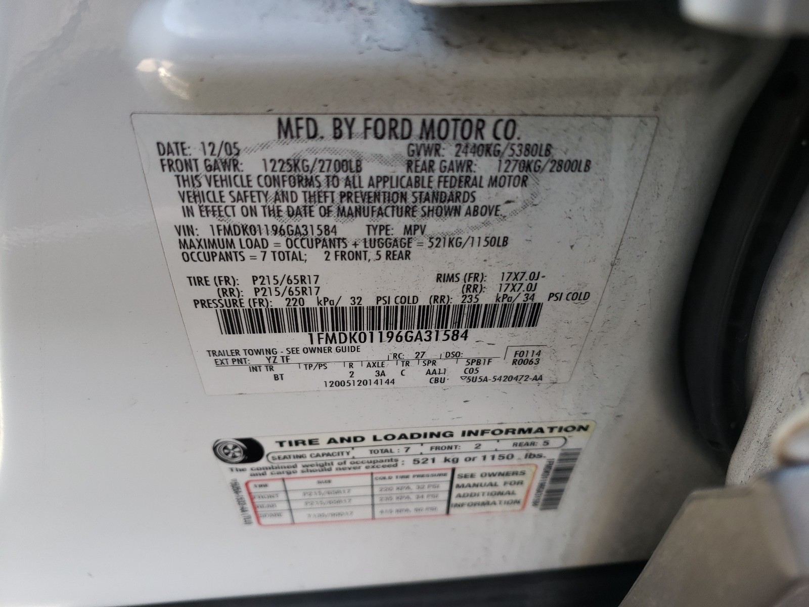 VIN: 1FMDK01196GA31584