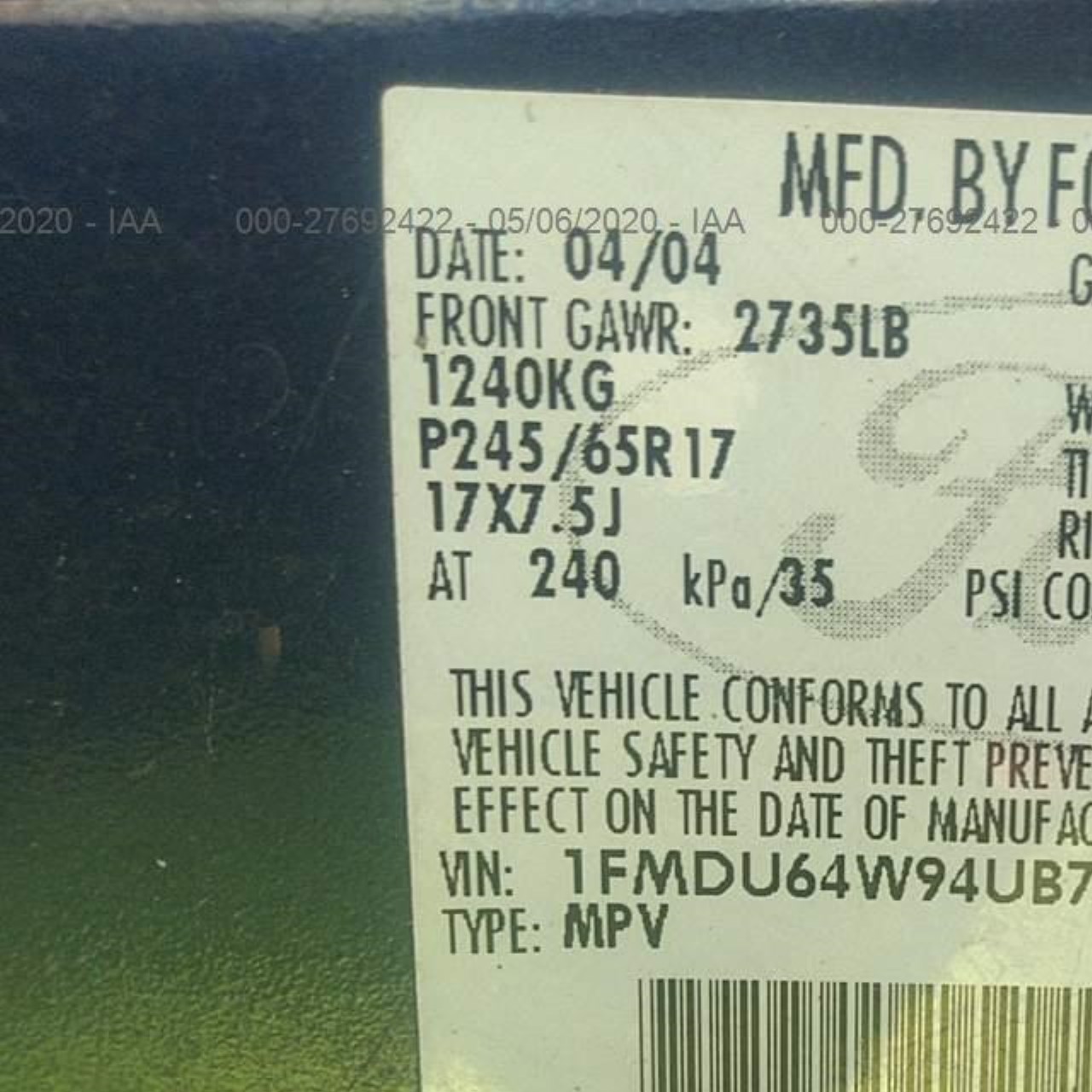 VIN: 1FMDU64W94UB79852
