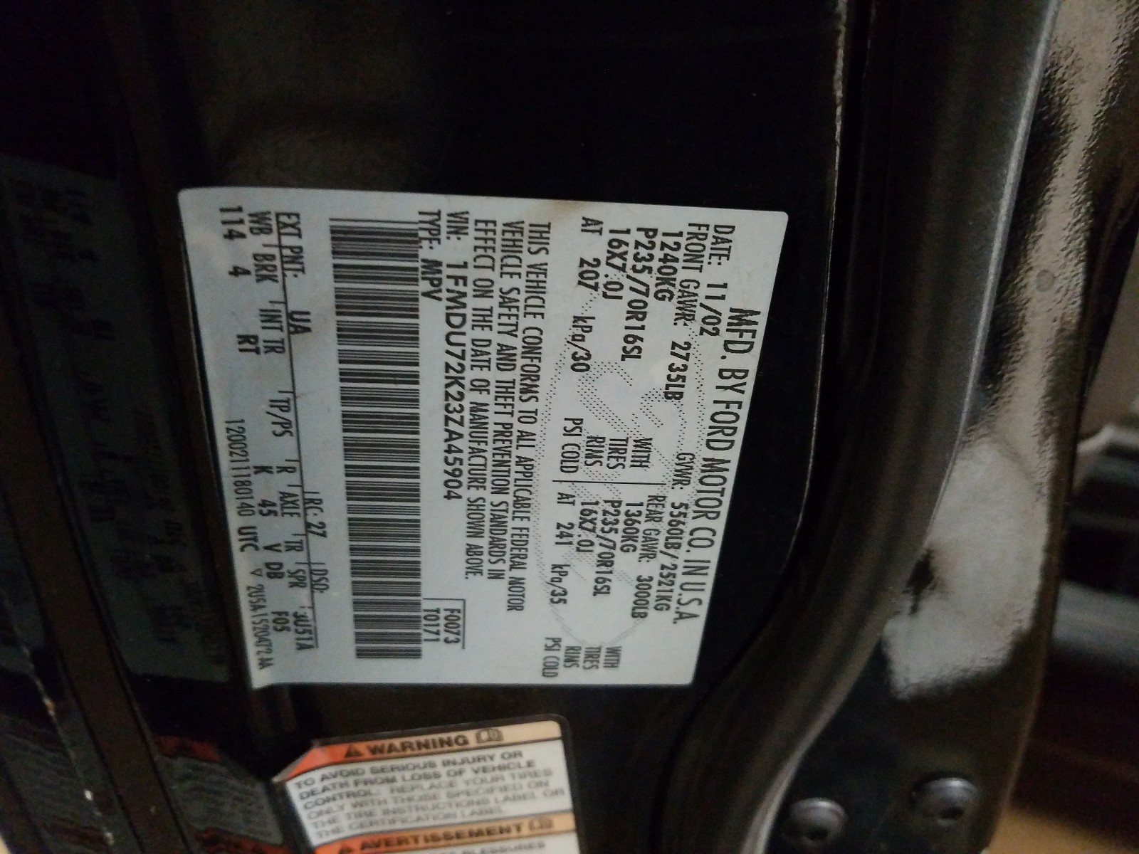 VIN: 1FMDU72K23ZA45904