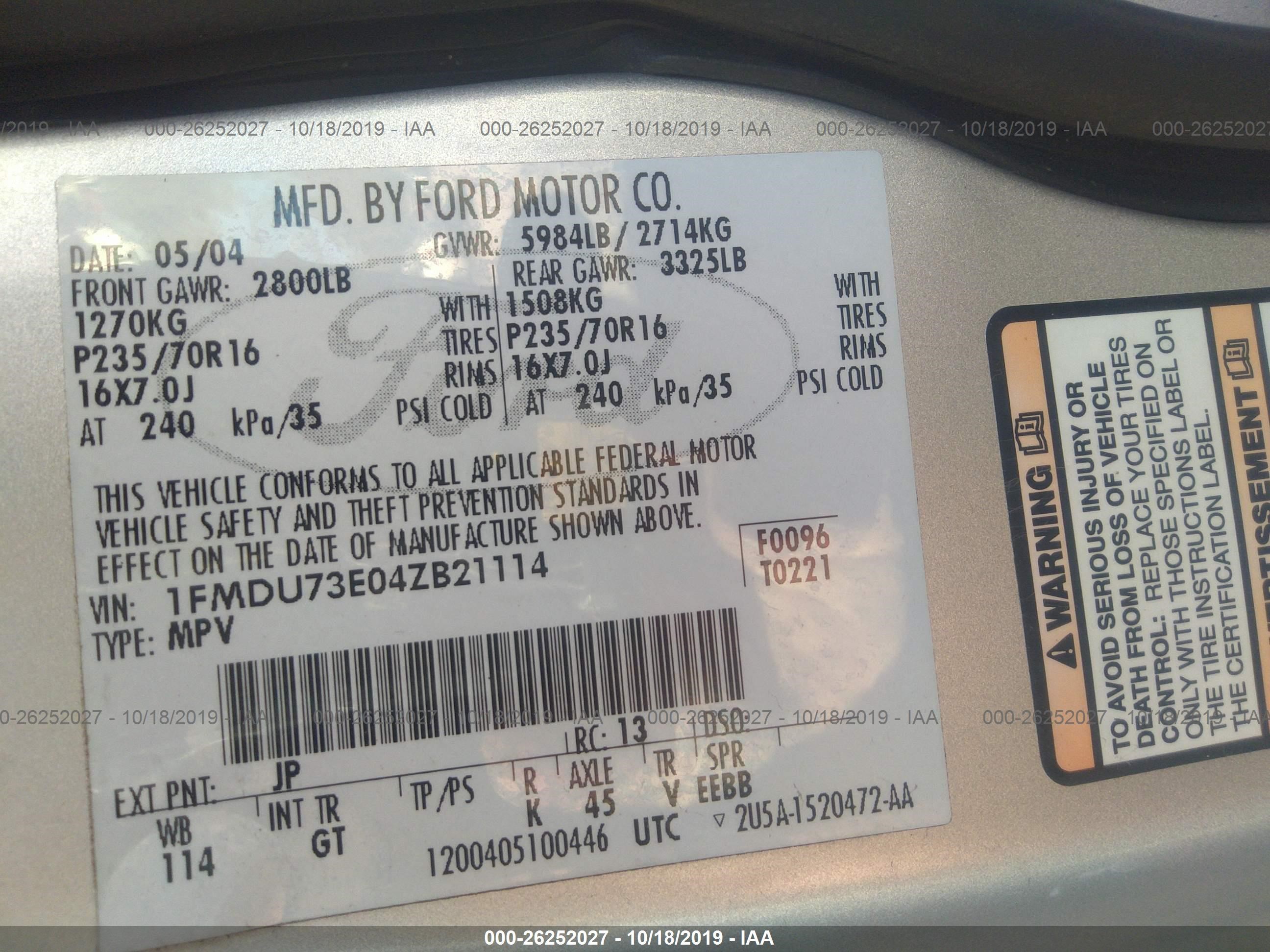 VIN: 1FMDU73E04ZB21114