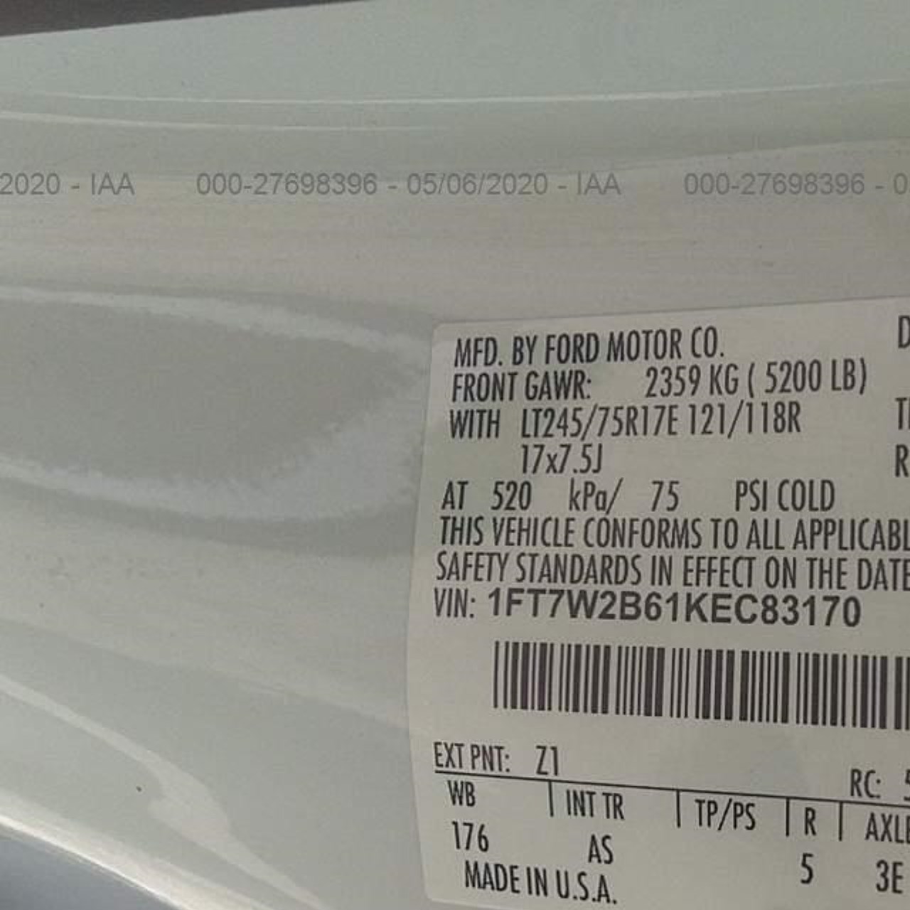VIN: 1FT7W2B61KEC83170