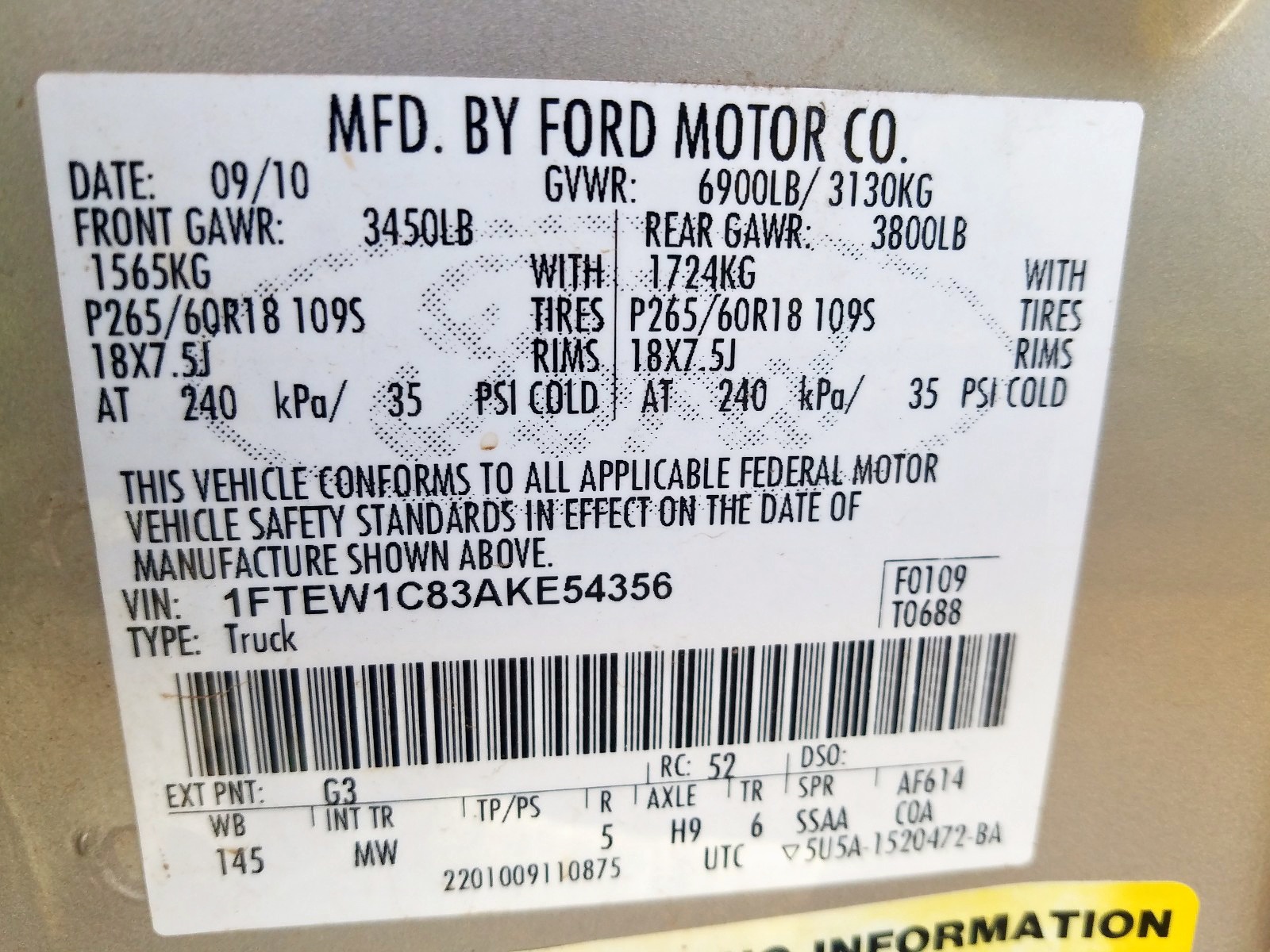 VIN: 1FTEW1C83AKE54356