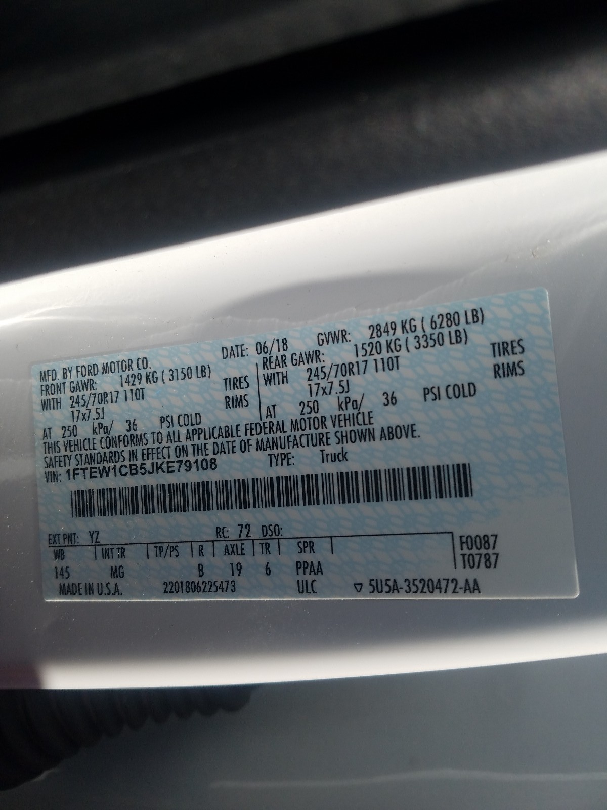 VIN: 1FTEW1CB5JKE79108