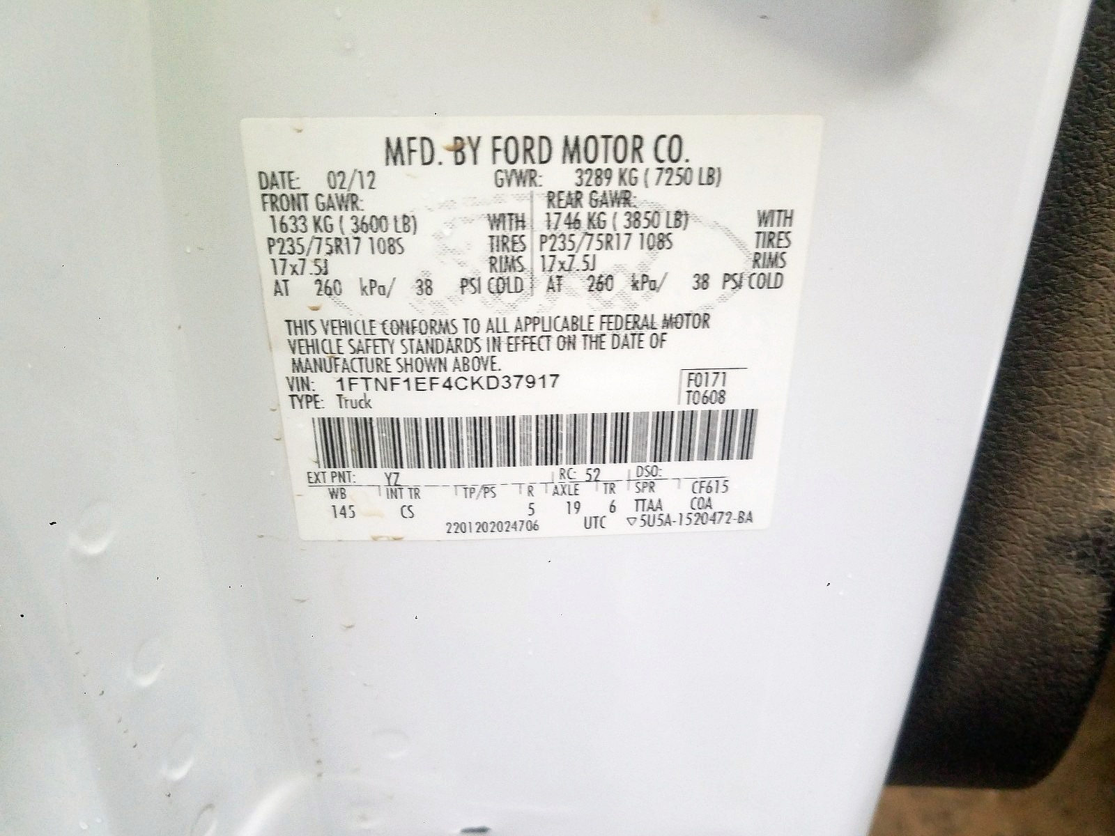 VIN: 1FTNF1EF4CKD37917