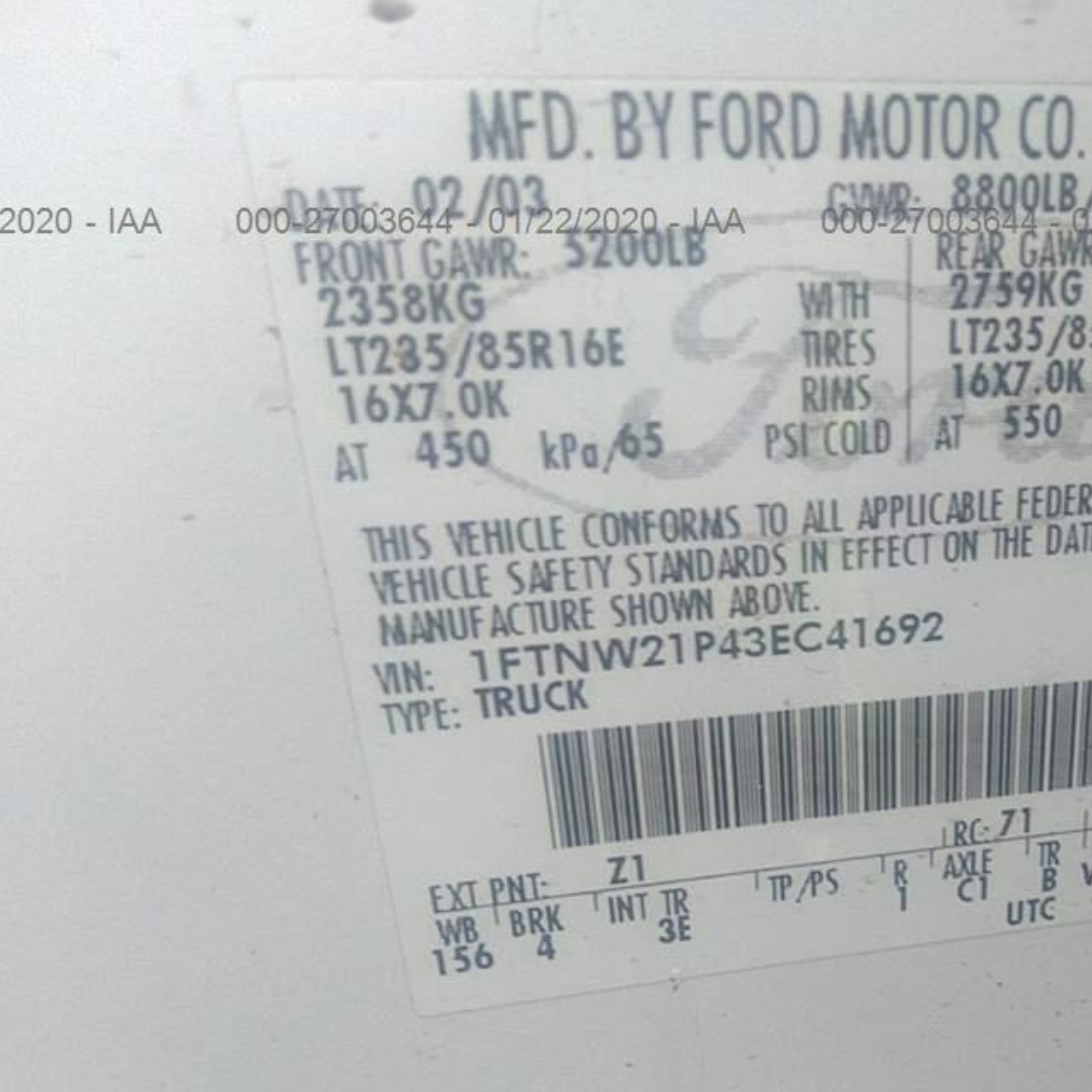 VIN: 1FTNW21P43EC41692