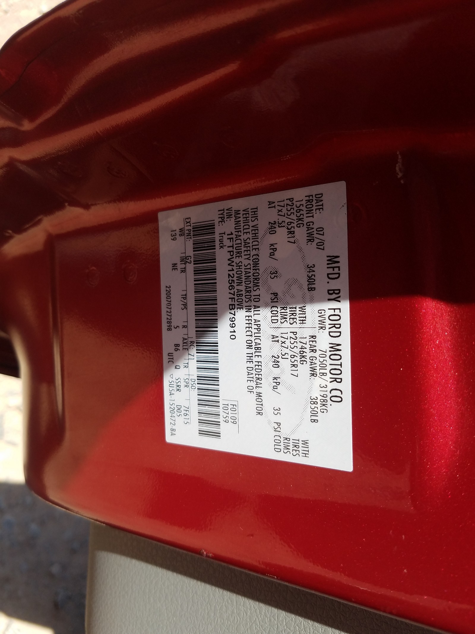 VIN: 1FTPW12567FB79910