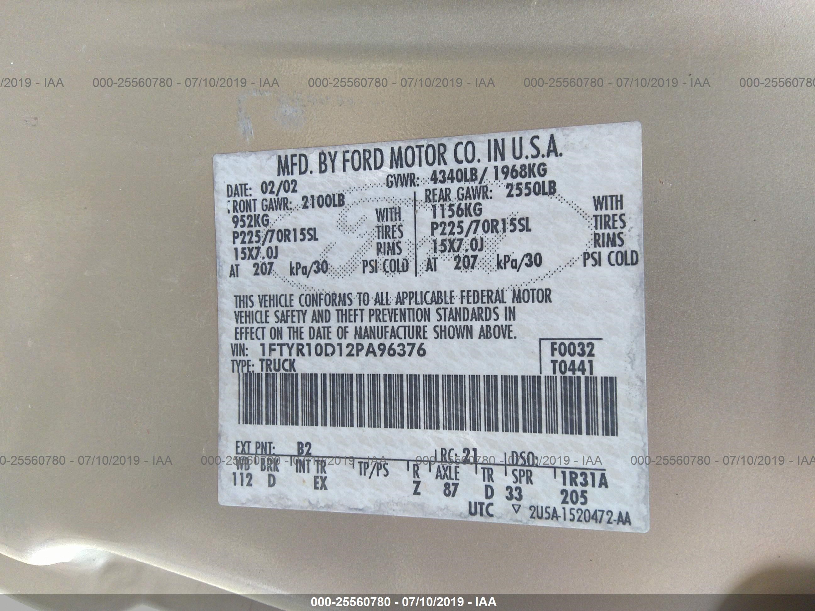 VIN: 1FTYR10D12PA96376