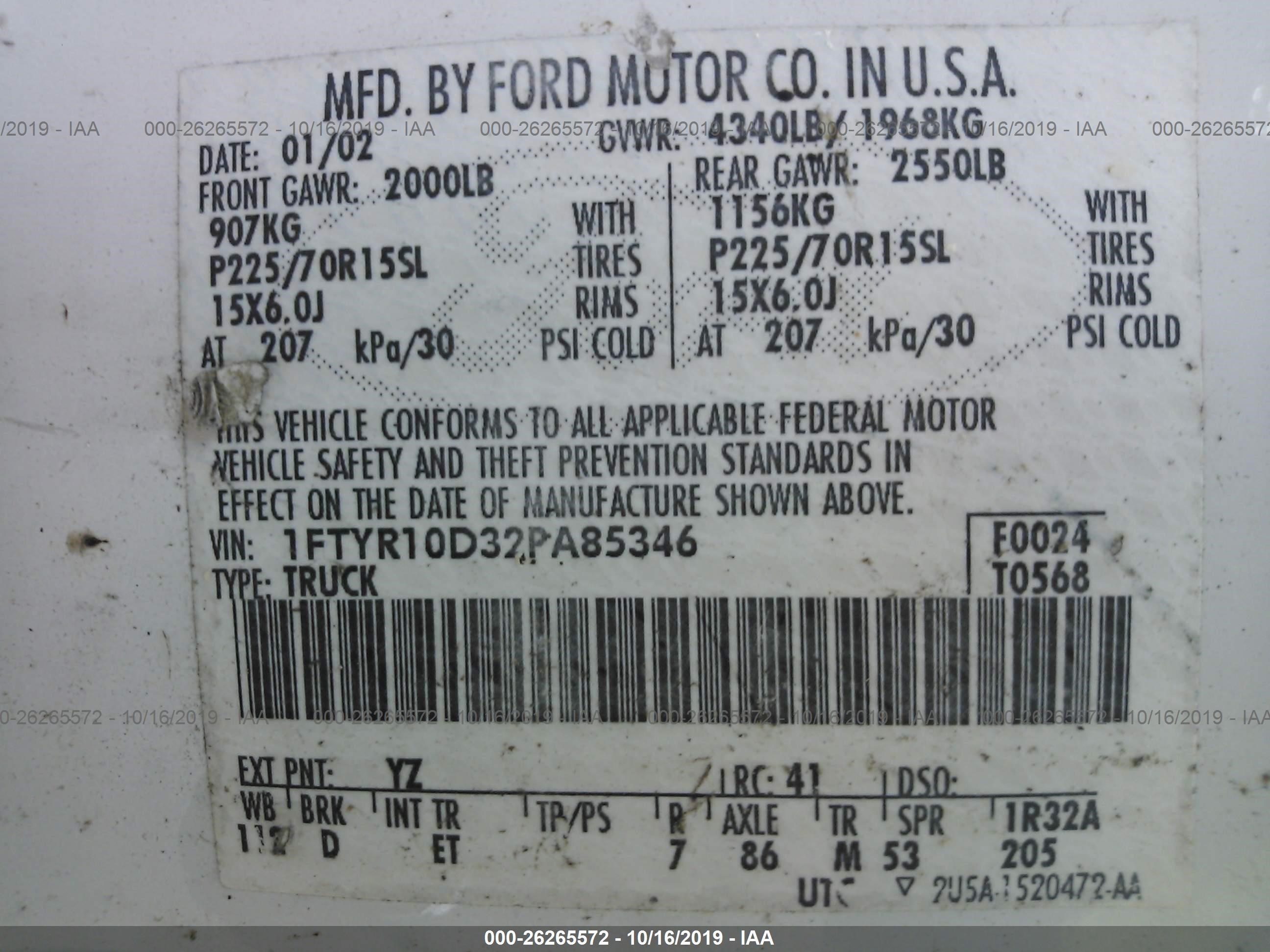 VIN: 1FTYR10D32PA85346