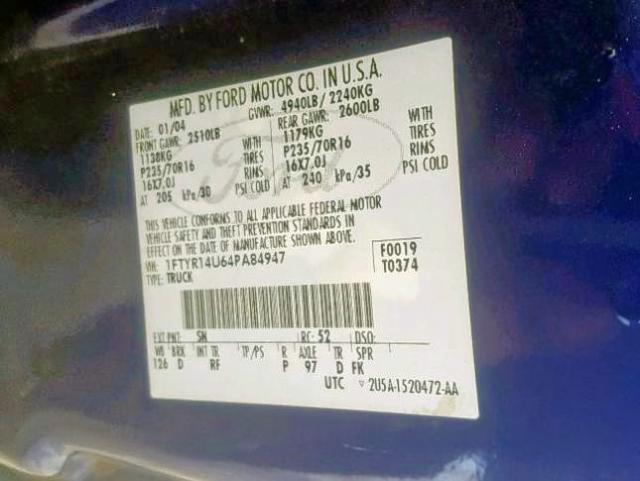 VIN: 1FTYR14U64PA84947