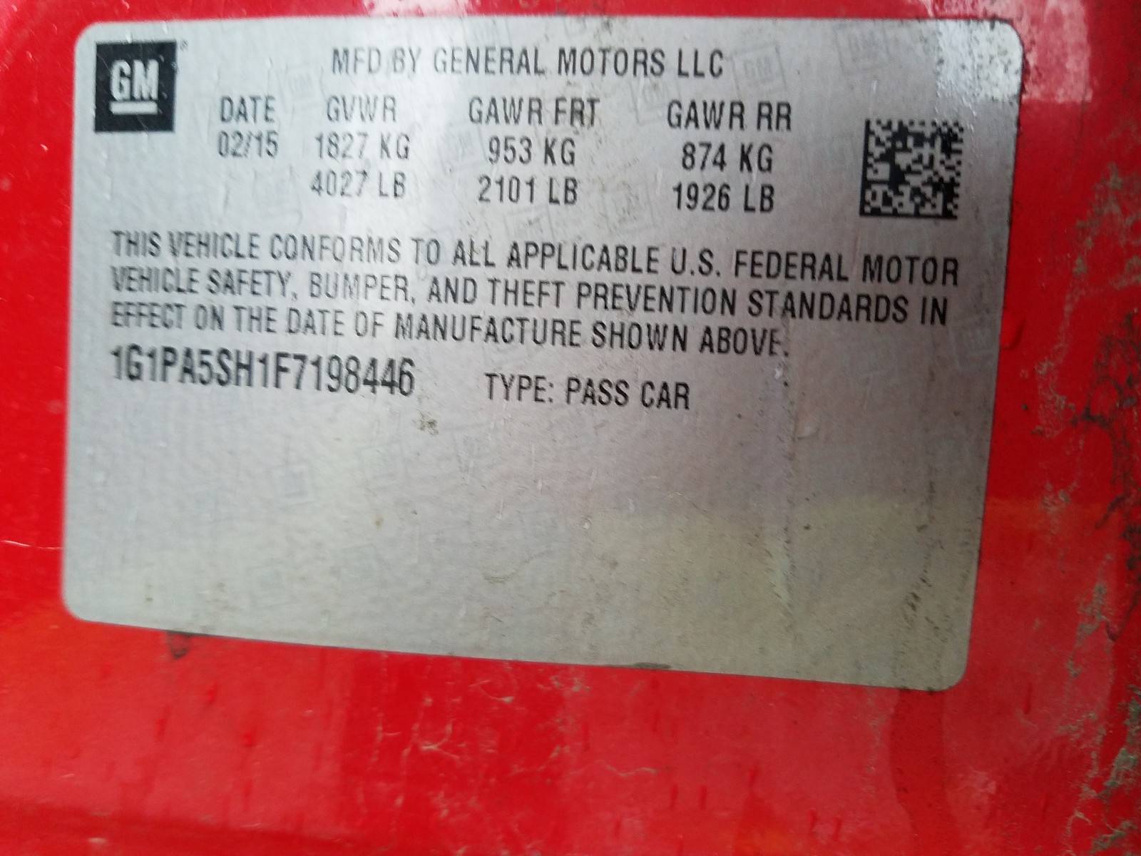 VIN: 1G1PA5SH1F7198446