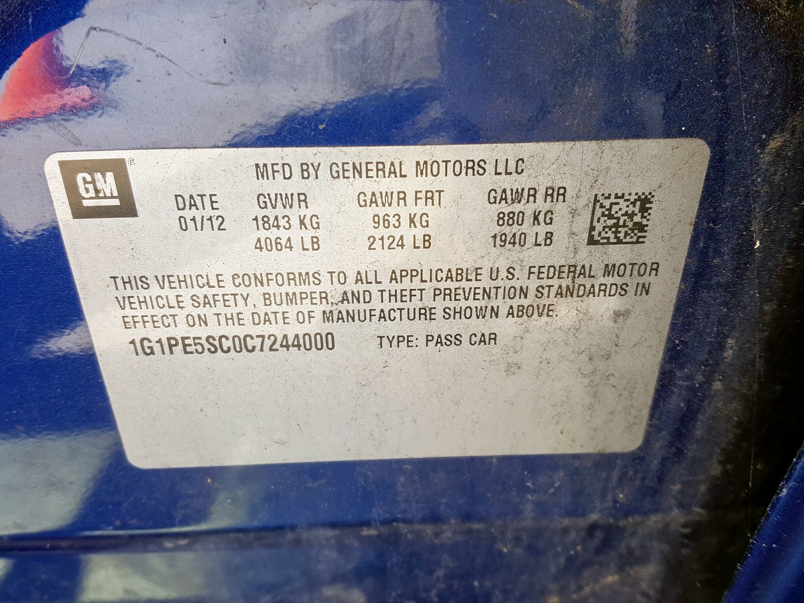 VIN: 1G1PE5SC0C7244000