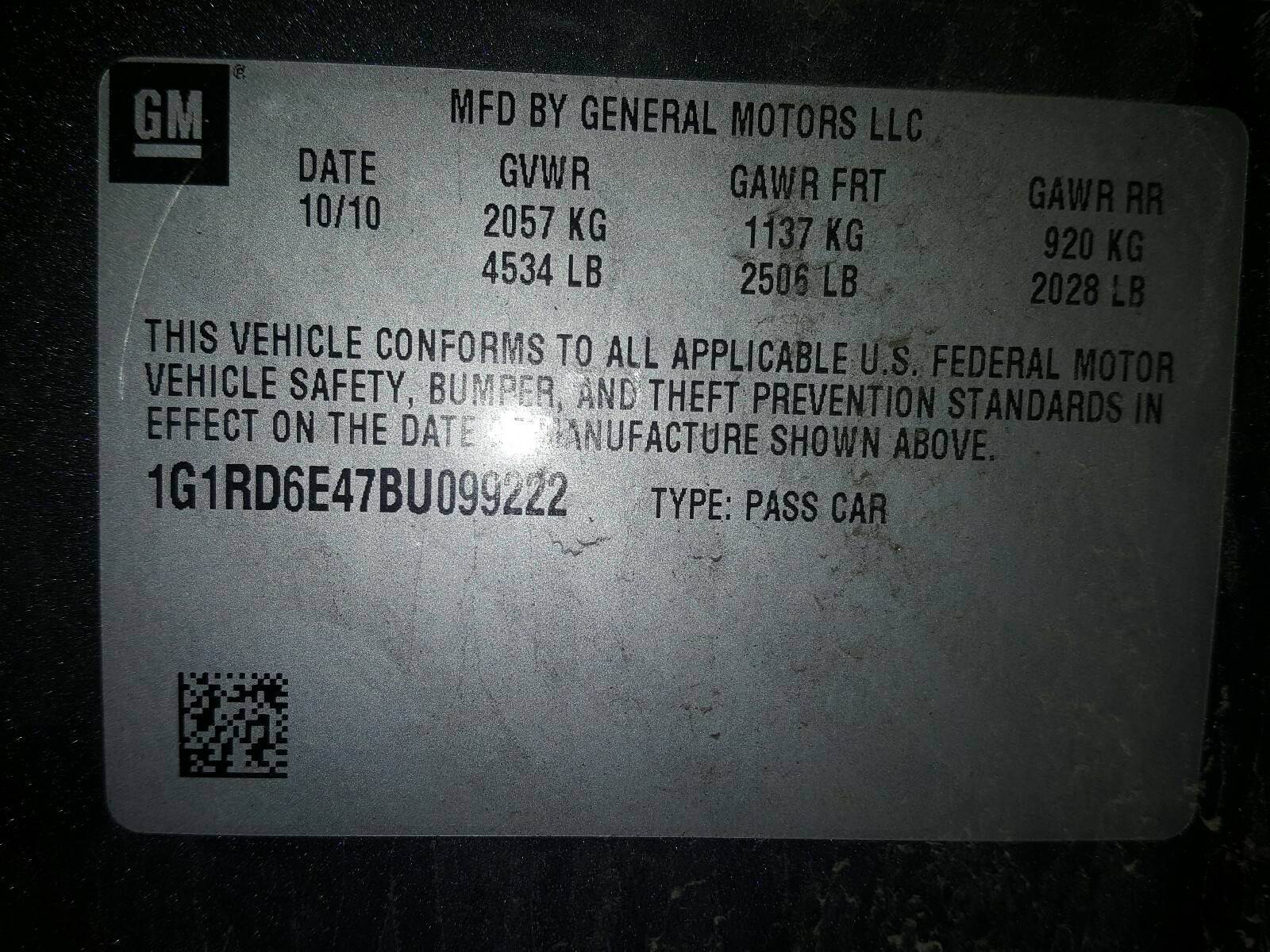 VIN: 1G1RD6E47BU099222
