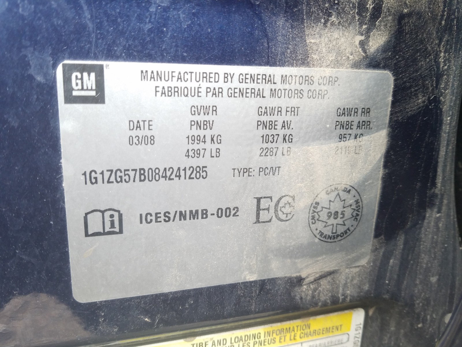 VIN: 1G1ZG57B084241285