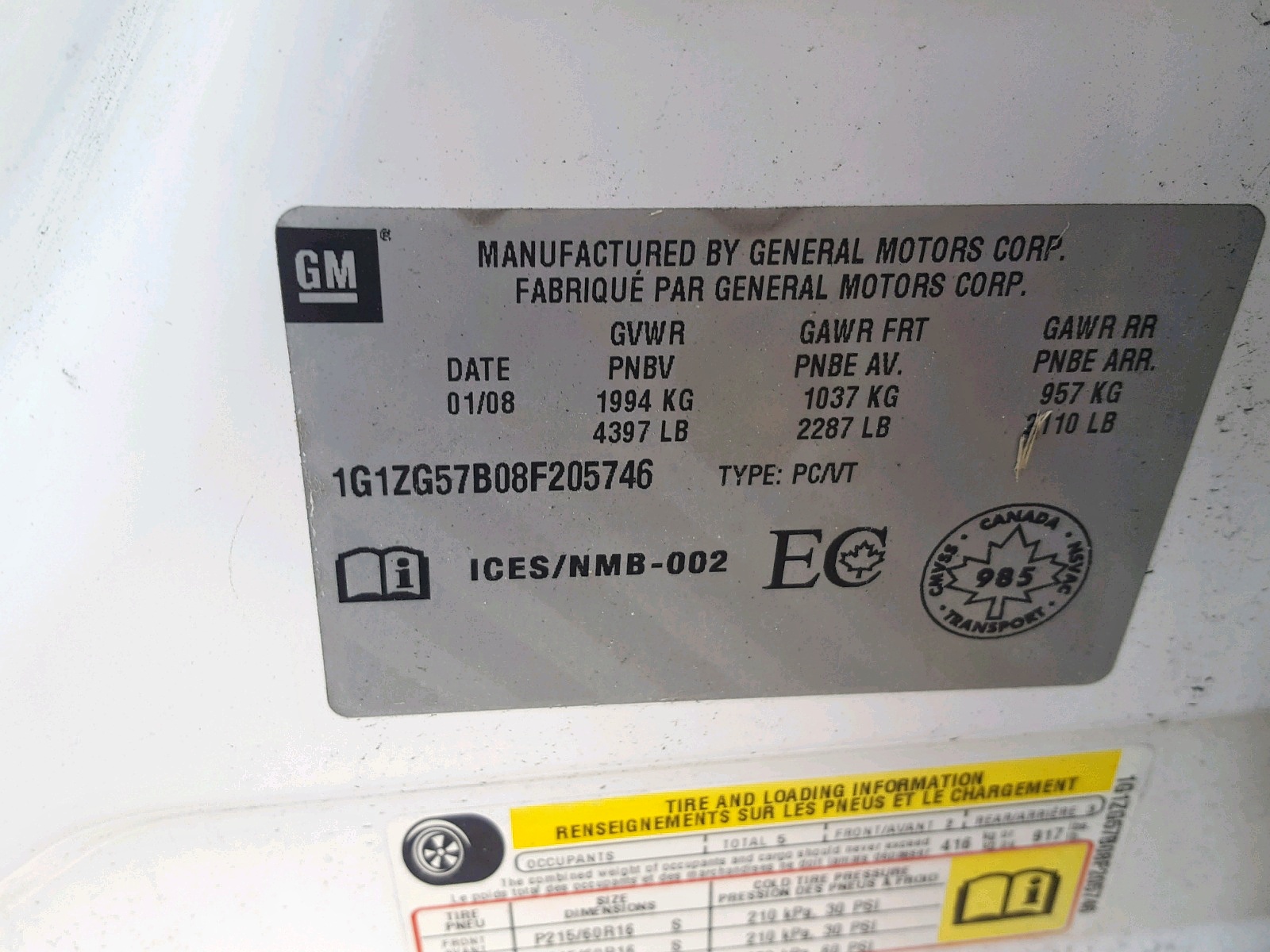 VIN: 1G1ZG57B08F205746