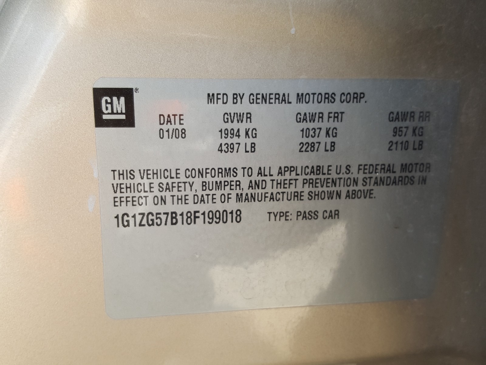 VIN: 1G1ZG57B18F199018