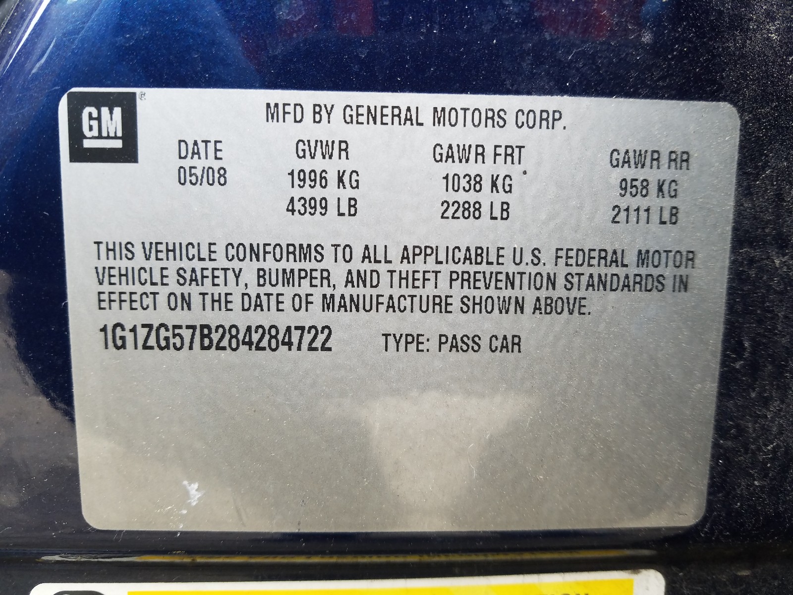 VIN: 1G1ZG57B284284722