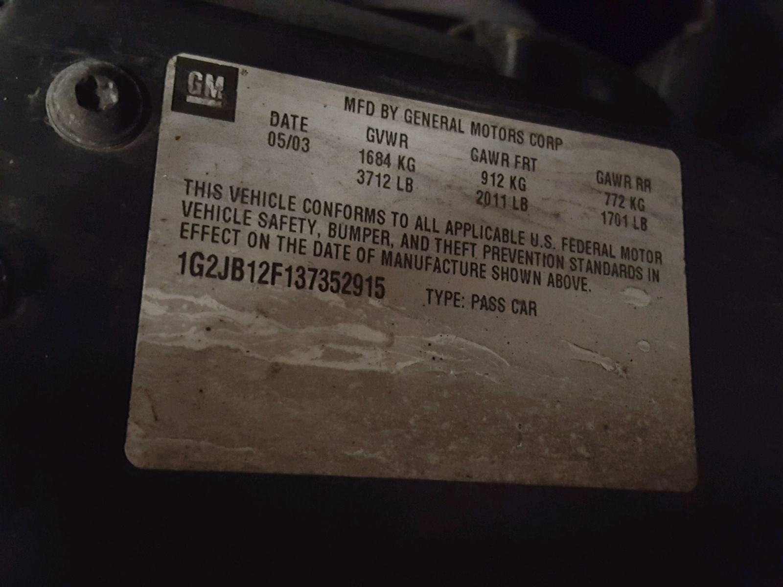VIN: 1G2JB12F137352915