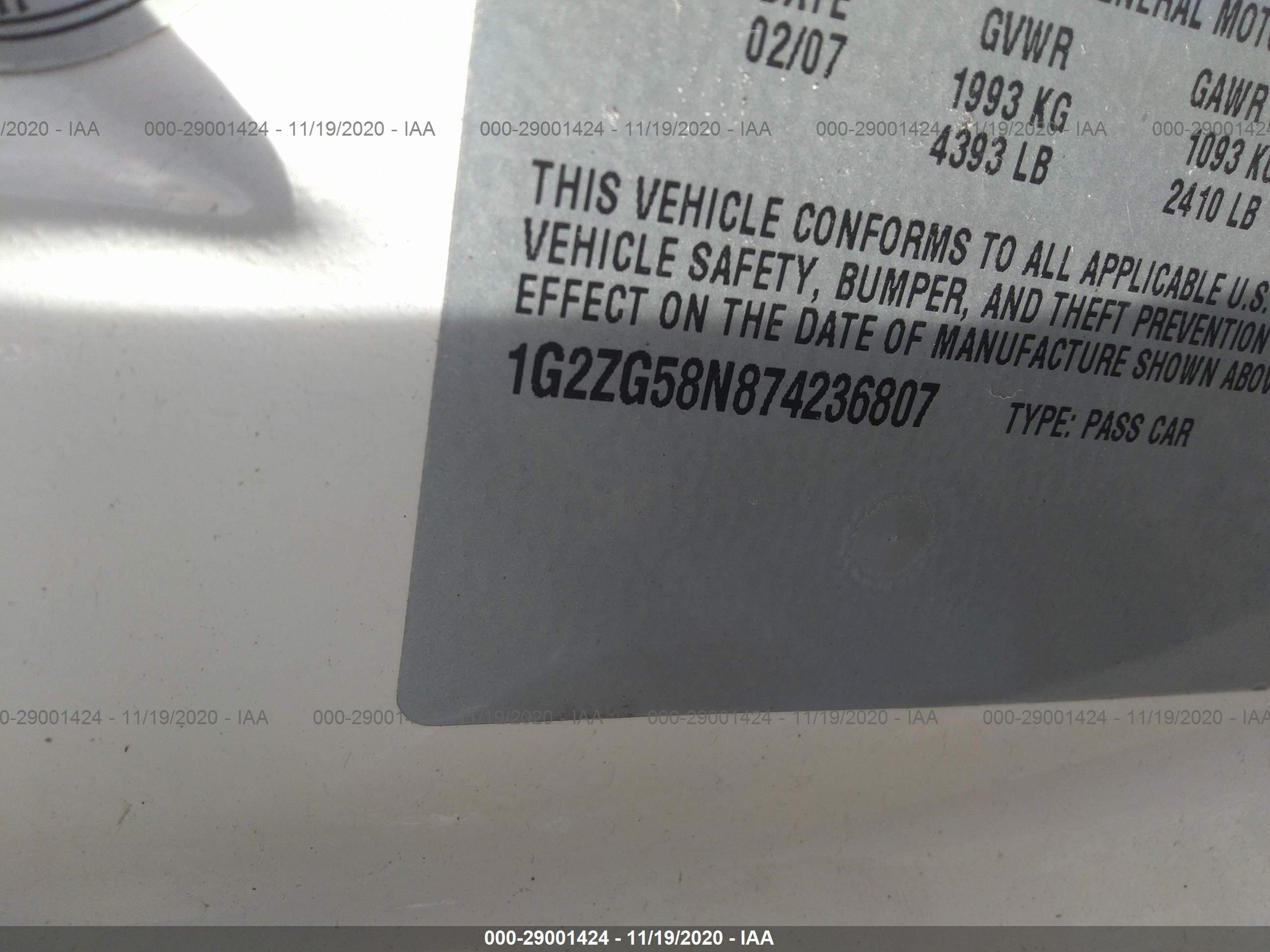 VIN: 1G2ZG58N874236807