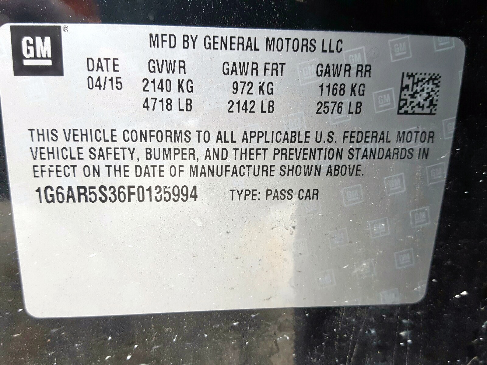 VIN: 1G6AR5S36F0135994