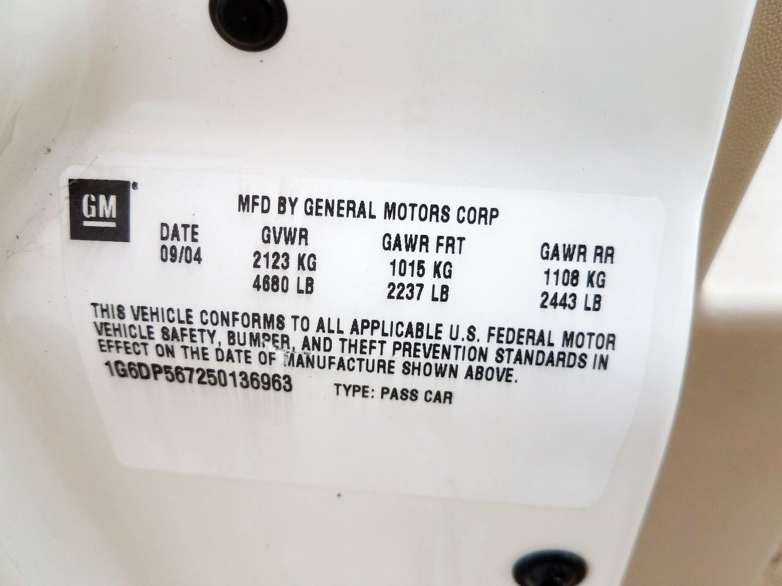 VIN: 1G6DP567250136963