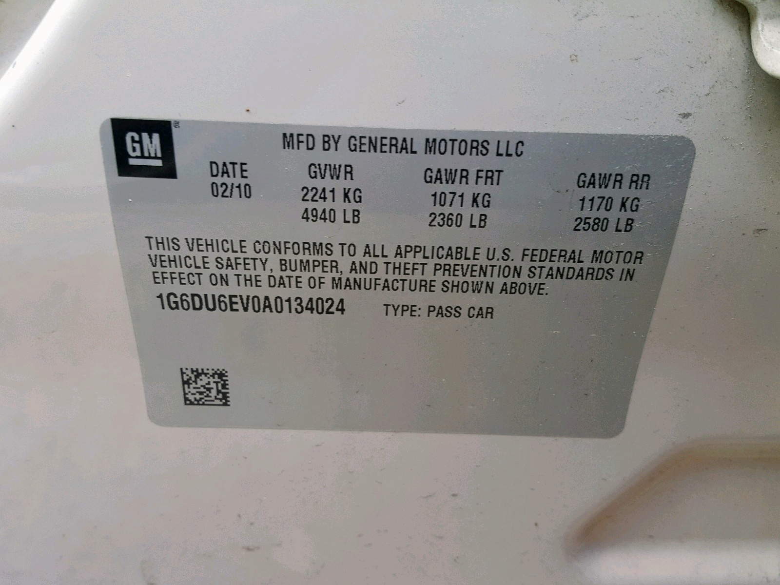 VIN: 1G6DU6EV0A0134024