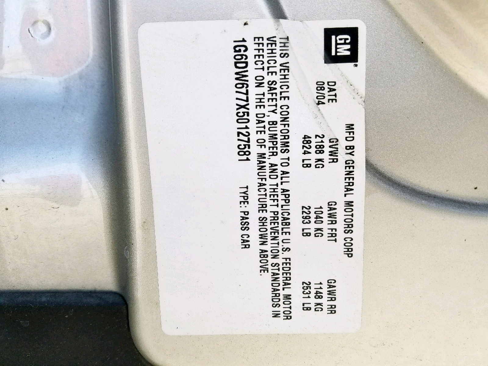 VIN: 1G6DW677X50127581